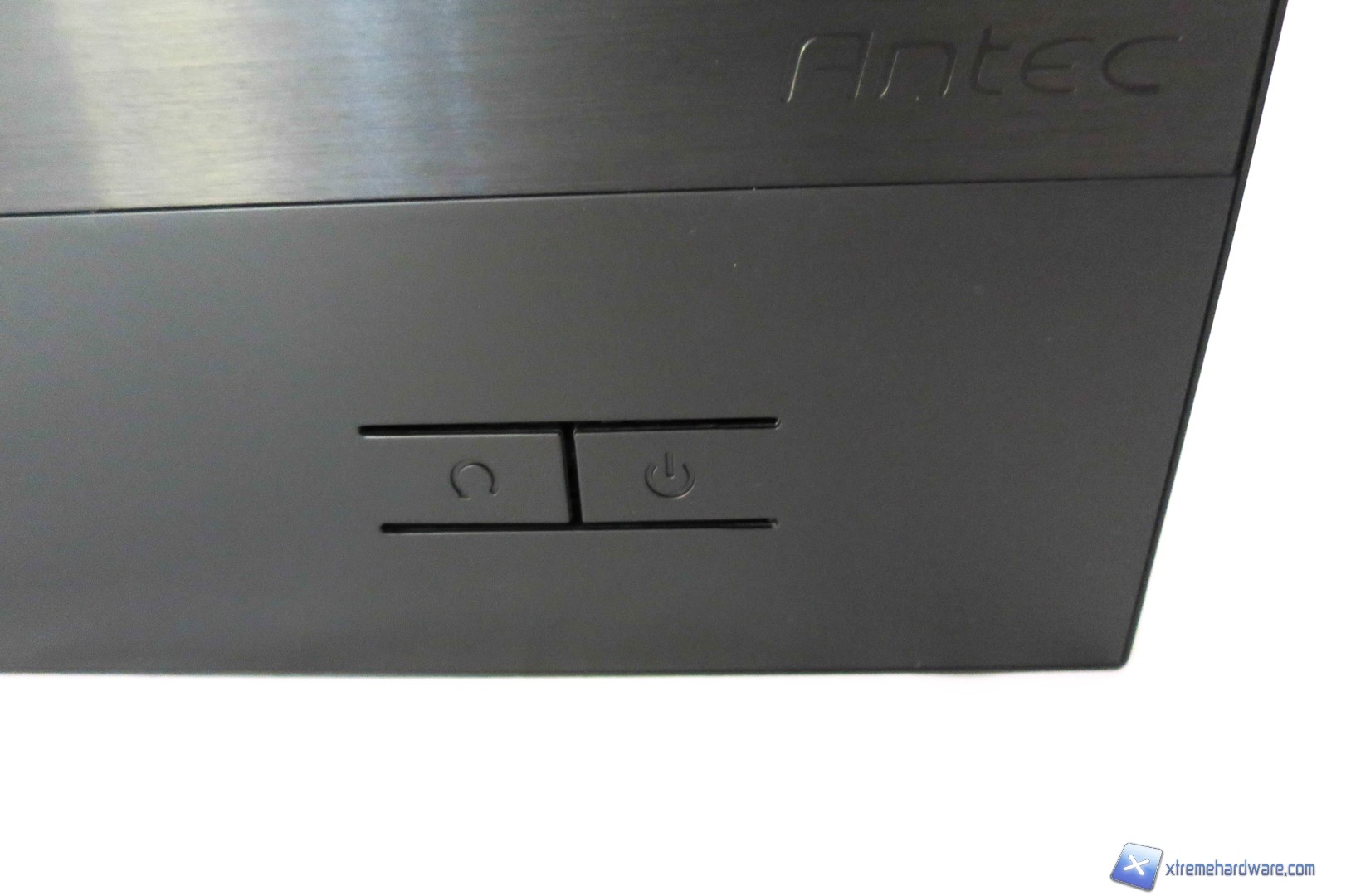 Il frontale è forse la parte più classica ed elegante del case. Questo si caratterizza per un frame in plastica a cui si aggiunge un inserto/plate in alluminio anodizzato che ne impreziosisce l’aspetto estetico complessivo grazie anche al logo del brand posto nell’angolo in basso a destra. L’effetto visivo e tattile rimangono validi. Il frontale nel complesso è pulito e privo di griglie per ventole. Nella parte inferiore del pannello troviamo i tasti di accensione e reset , una porta USB 2.0, una USB 3.0 ed i classici jack da 3,5mm per cuffie e microfono. Spostandoci verso l’alto troviamo il vano/slot per unità ottiche slim, le stesse dei notebook, che permette di mantenere un design pulito e poco invasivo senza sacrificare l’aspetto pratico.