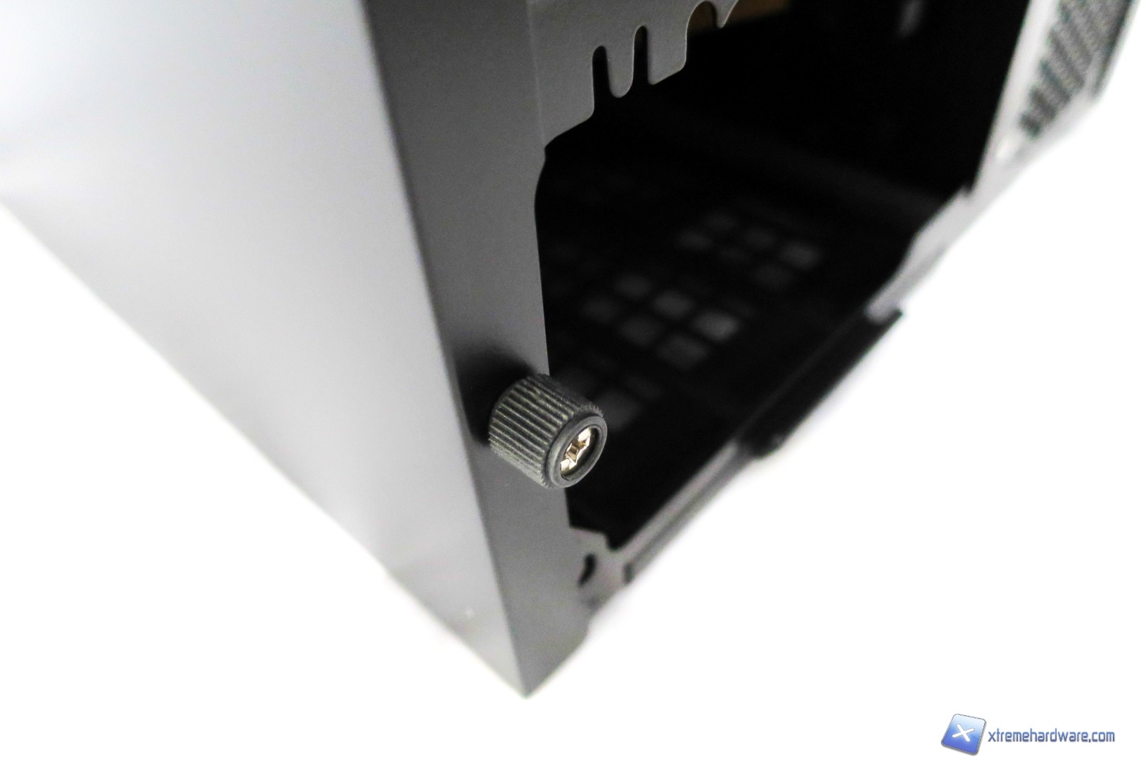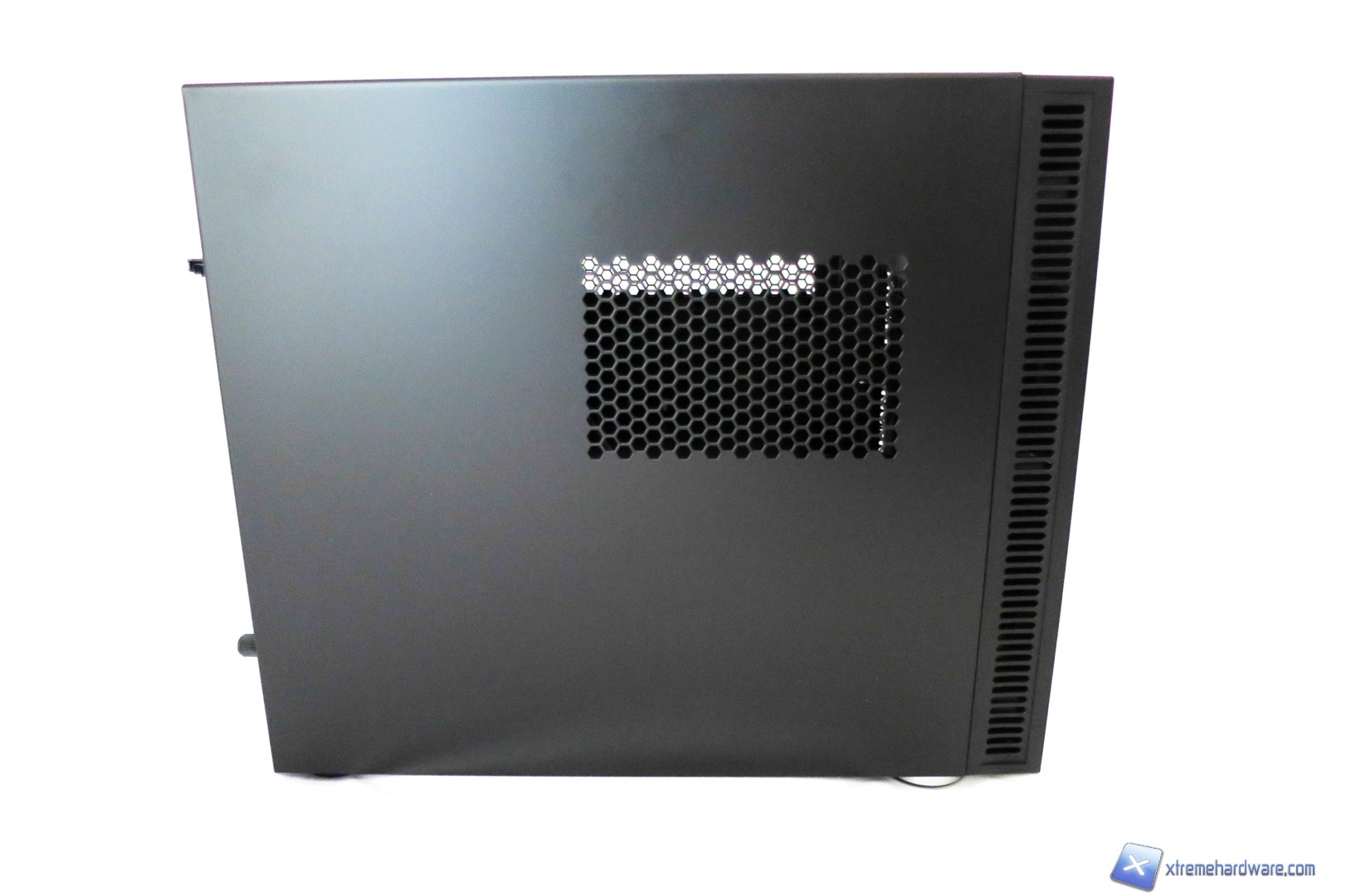 I pannelli laterali del case sono dotati entrambi di fori con una trama a nido d’ape che permetteranno l’afflusso e/o l’espulsione di aria dal case. A differenza di altri case di forma cubica, il case ISK600M adotta un’apertura su tre lati con un singolo pannello in metallo: una volta  rimosse le tre viti Tool-Less, ci basterà sfilare l’intera paratia per accedere all’interno del case.