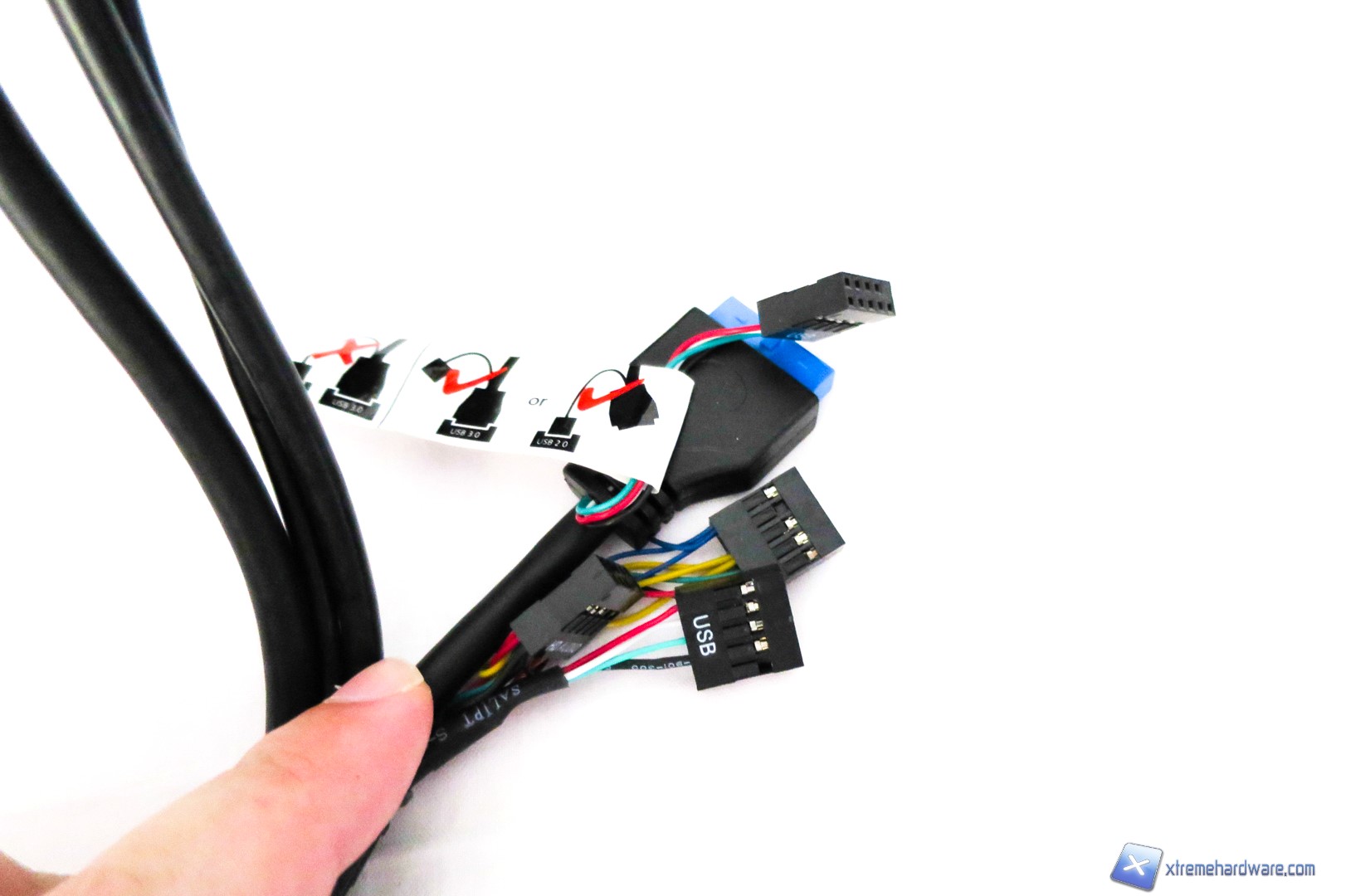 Internamente troviamo anche una notevole quantità di connessioni interne quali un cavo USB 3.0, i classici cavi di Reset, Power e LED di stato, e per finire un connettore Molex per alimentare il LED di colore blu posto nel mezzo di queste connessioni. Tale LED sarà inoltre proiettato verso il basso grazie ad una superficie in plastica opacizzata.