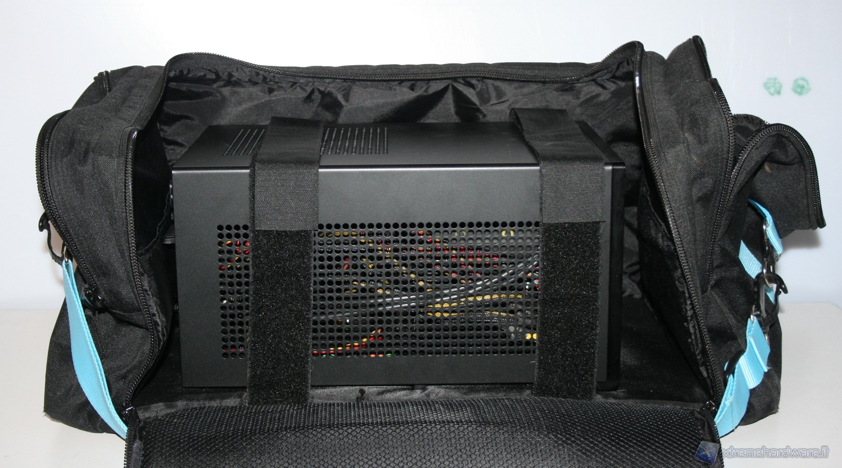 Ma cosa significa allora in realtà? Significa portabilità e potenza, quindi? LAN-PARTY! Allo scopo della recensione abbiamo provato per voi anche la Silverstone “SUGO BAG” (al cui interno come vedete è posizionato il case di questa recensione), ovvero una borsa creata ad hoc, per alloggiare all’interno il vostro cabinet dell’omonima serie. Una borsa eccellente sotto ogni punto di vista, perfetta anche per altri scopi, ad esempio la palestra oppure viaggi di breve o media durata.