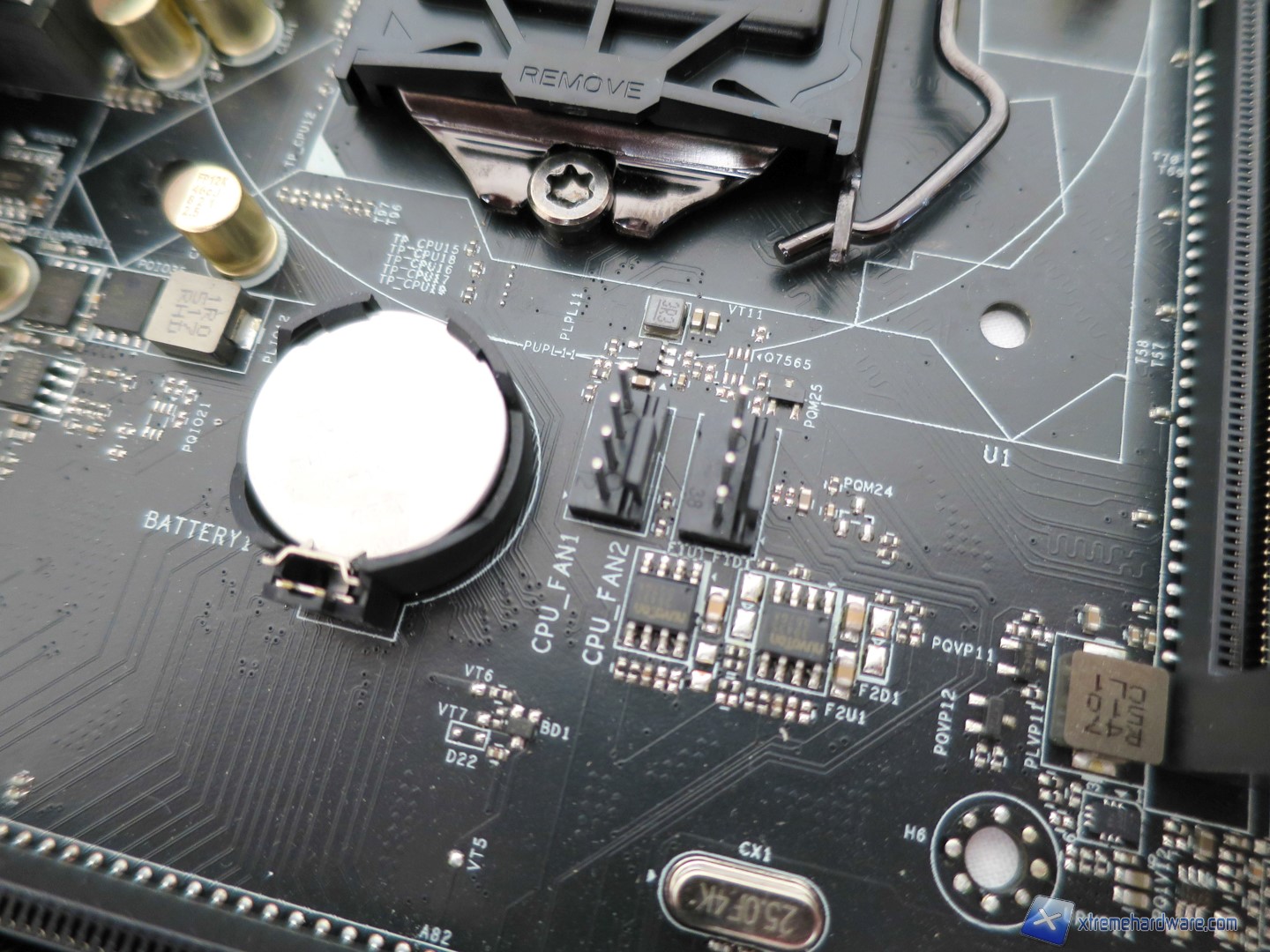 Gli Header per le ventole della CPU sono posti invece nella zona inferiore al socket LGA1151, vicino alla batteria tampone.