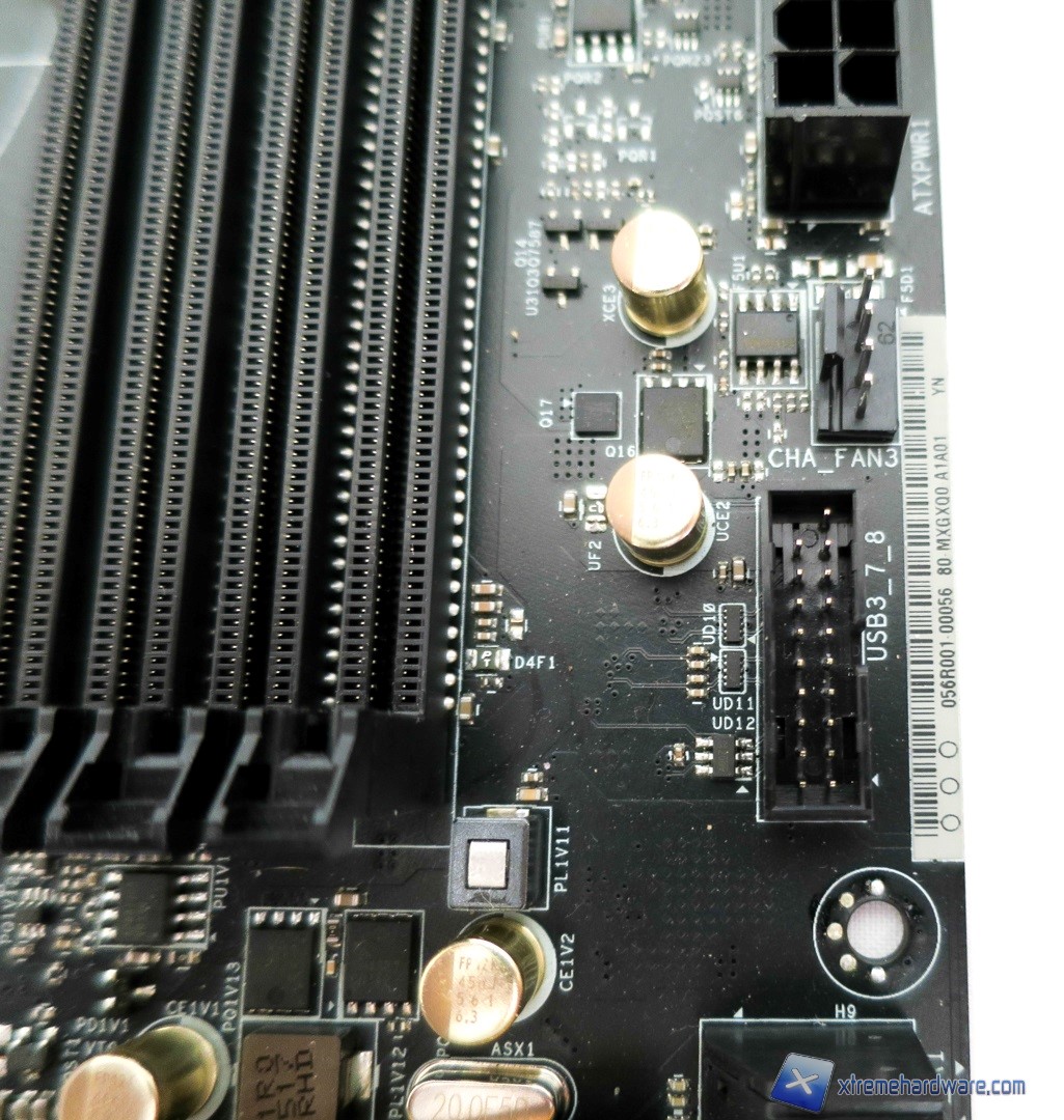 Proseguiamo l’analisi del lato destro della scheda madre. Notiamo l’heatsink in alluminio di generose dimensioni che copre e dissipa il PCH Z170 della Extreme6. 22