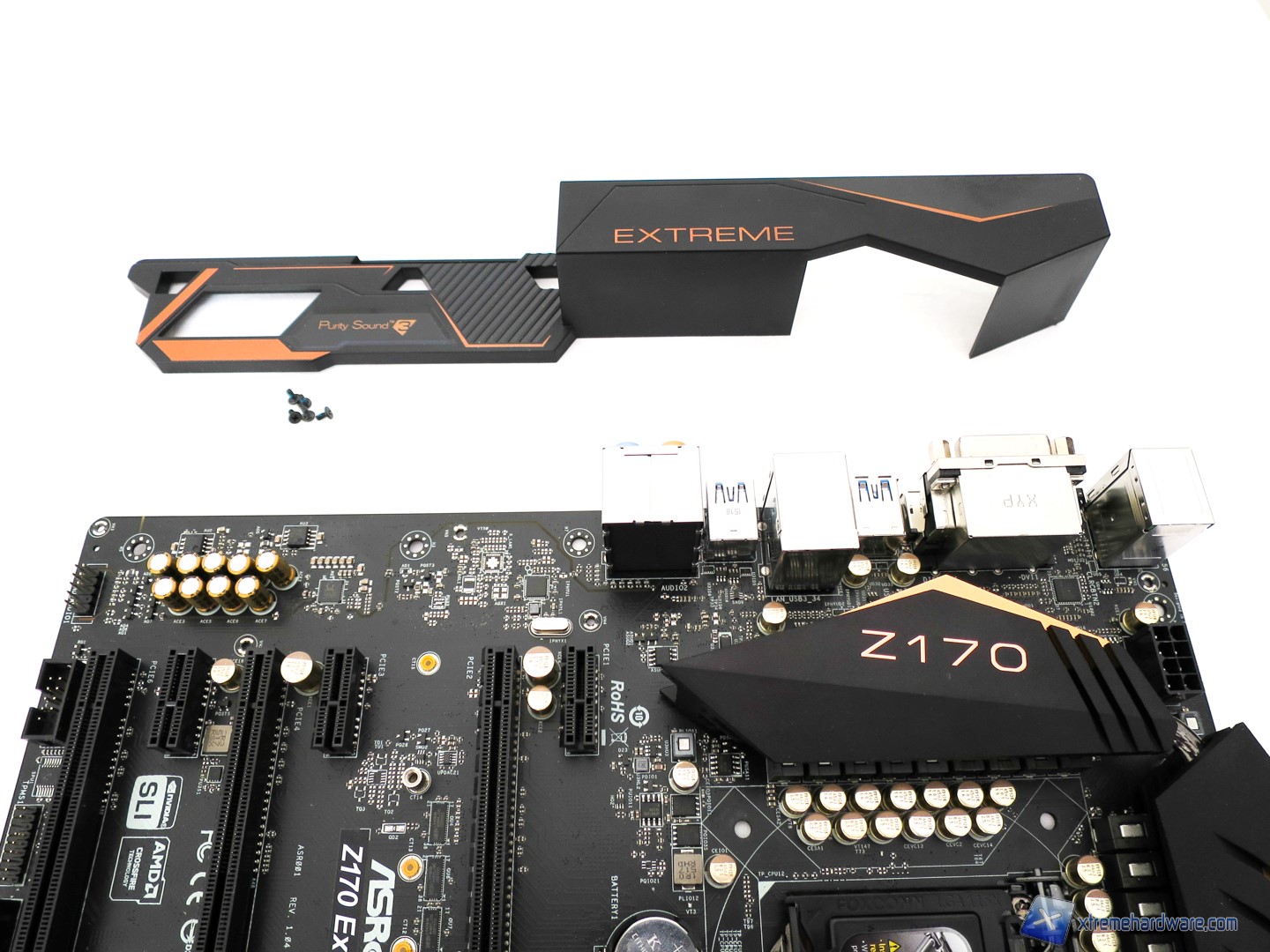 Completiamo l’analisi della ASRock Z170 Extreme6 riportando l’immagine di tutti gli heatsink e della Shield utilizzati sulla scheda madre.