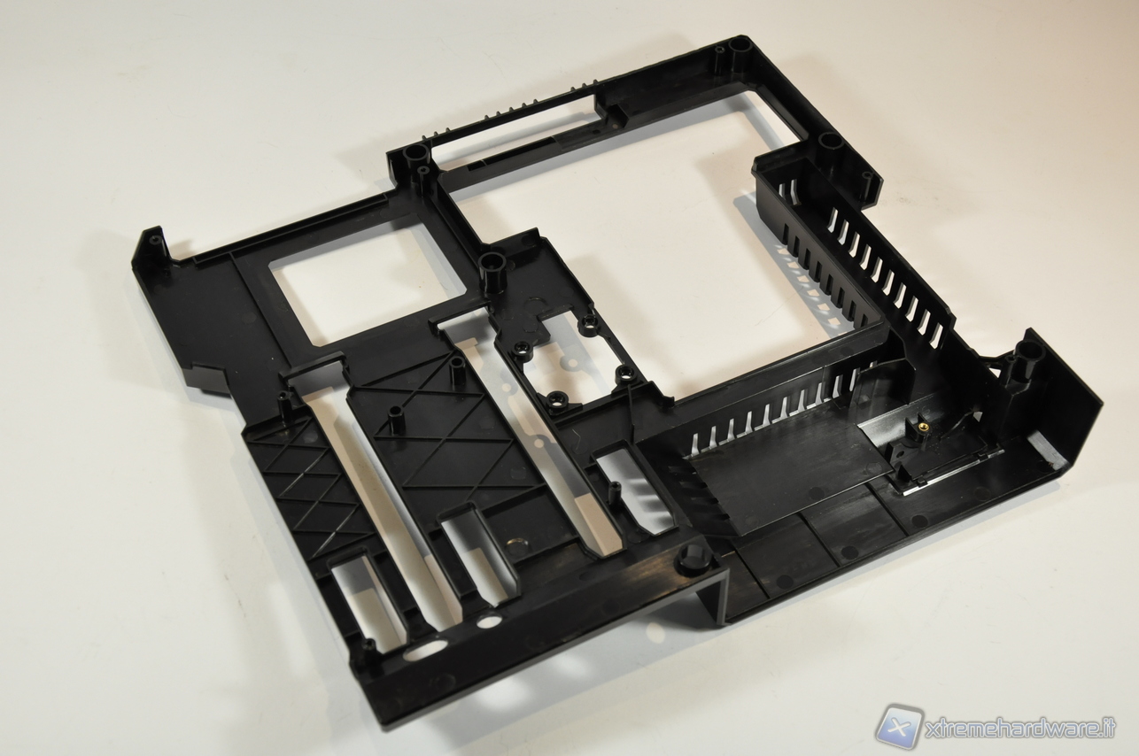 Il bundle è veramente ridotto all’osso. Confidiamo che il prodotto destinato agli scaffali in vendita sia più completo, dato che questo che abbiamo ricevuto è un sample destinato alle redazioni. Distinguiamo comunque le due ventoline che andranno montate nella posizione che mostreremo in seguito. Il bracket per le porte I/O, il DVD comprendente i drivers ed i software, un foglio illustrativo ed ulteriori supporti in plastica che vanno a coprire gli slot inutilizzati, in modo da impedire la fuoriuscita dell’aria che cosi seguirà il percorso prestabilito per il raffreddamento di tutti i componenti sottostanti alla scocca. Questi ultimi hanno inoltre l’importantissimo compito di proteggere gli slot di espansione dalla polvere, evitando possibili falsi contatti all’atto di upgrade effettuati dopo un lungo utilizzo del PC.